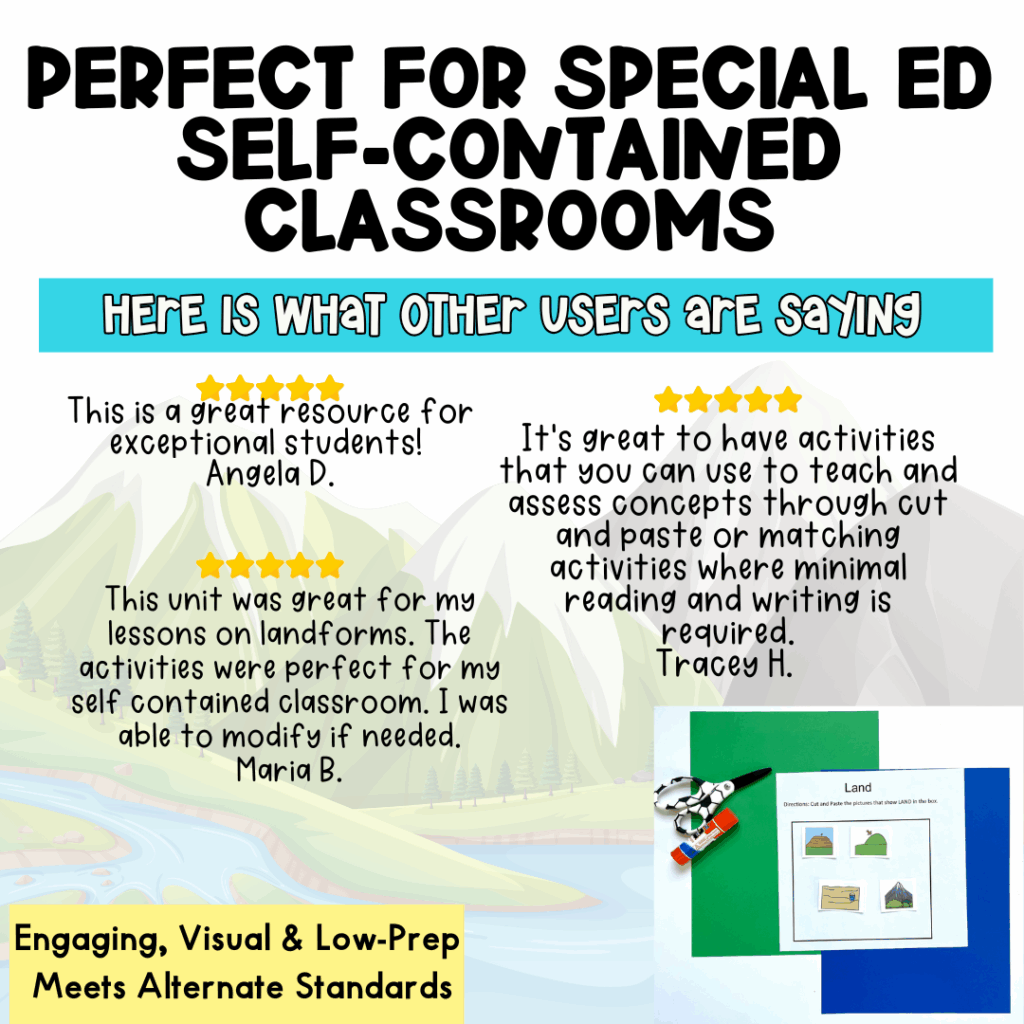One of my students used to call everything “land.” One day, after weeks of working through the adapted book and sorting tasks, he pointed to a picture and said, “Island is land with water around!” That moment showed how repetition, visuals, and adapted resources can click.