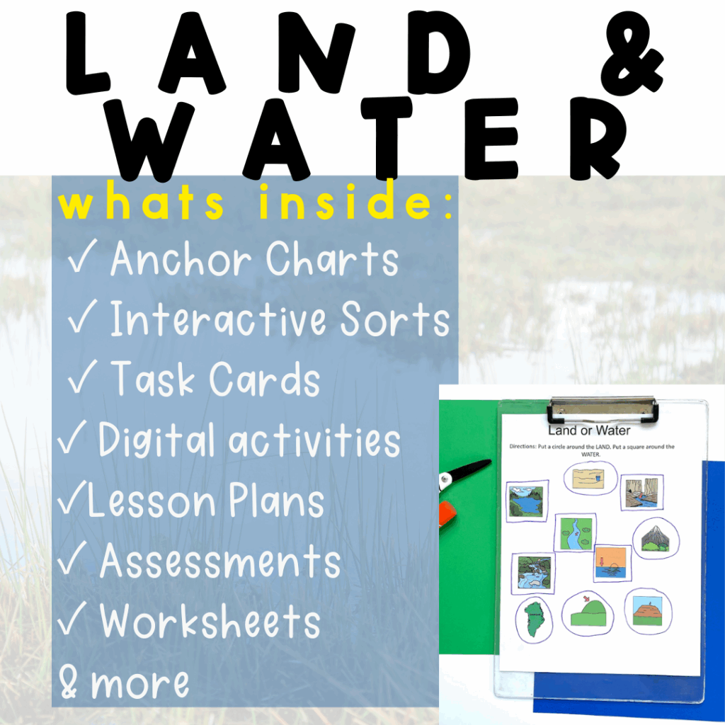Try the Freebie First Before jumping into the full lesson, try the Land and Water Freebie! It includes sorting visuals and simple comprehension pages. Download it here.