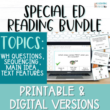 Ready for these to teacher reading comprehension and wh questions with these task card bundle that are printable and digital for special education classrooms? These themed classroom activities are for special education classrooms. The activity includes both printable PDF and digital files, and is ideal for use in a variety of settings such as digital classrooms, 1:1 classrooms, and alternative learning environments.