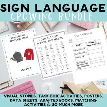 Looking for materials to help teach basic sign language to your students? This growing basic sign language bundle is perfect for preschool and students with special needs to work on their communication skills!