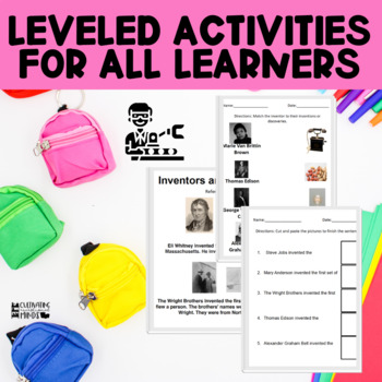 Teach about these inventors and inventions along with famous inventors with this special education task boxes and special education adapted books for social studies activities for sped students focusing on history special education. These social studies inventors and inventions teach special education social studies easily with these inventors and inventions special education resources focusing on men and women along with their inventions. The skills include errorless, cut and paste, and matching natural resources activities and leveled for all special ed learners. These themed classroom activities are for special education classrooms. Students will work with partners or in small groups social studies dealing with natural resources. The activity includes both printable PDF, and is ideal for use in a variety of settings such as 1:1 classrooms, self-contained special ed classrooms and alternative learning environments.