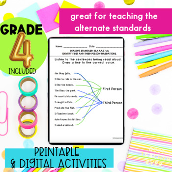 Are you looking for a product that is full of ALL the Alternate Fourth Grade ELA Standards for the Alabama Alternate Standards? These worksheets are for students working towards the Alabama Alternate Assessment, Alabama Alternate Standards, and the ACAP- Alternate Assessment and are my interpretation of the standards. There are over 70 pages of fourth grade alternate standards worksheets for a wide range of ability levels that are ready to print and go, no prep required!