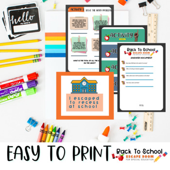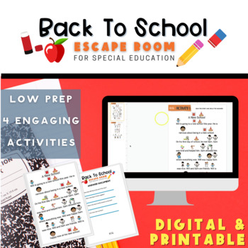 Back To School Escape Room Special Education Autism Adapted BTS Special Ed