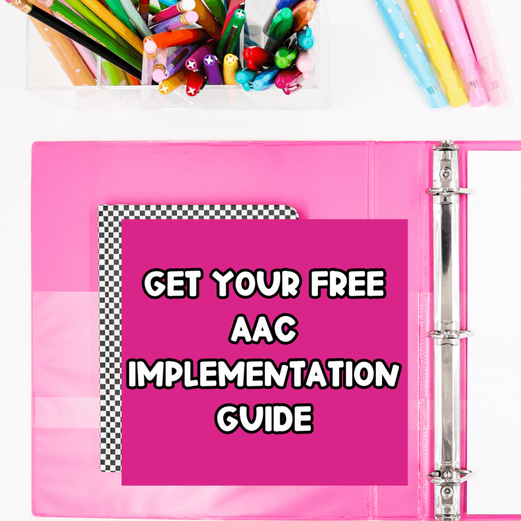 If you’re ready to take action and implement AAC in your classroom, grab my free AAC Implementation Guide. It’s packed with tips and tools to make AAC easy for you and your students. Download it here and start changing lives today!